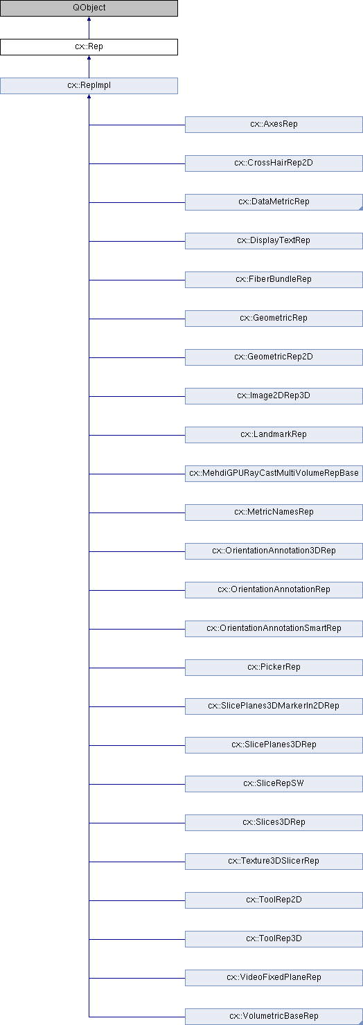 Implemented in cx::SlicePlanes3DMarkerIn2DRep, cx::SlicePlanes3DRep, cx::LandmarkRep, cx::Image2DRep3D, cx::Texture3DSlicerRep, cx::VolumetricRep, cx::Slices3DRep, cx::OrientationAnnotationRep, cx::PickerRep, cx::ToolRep3D, cx::ToolRep2D, cx::AngleMetricRep, cx::VideoFixedPlaneRep, cx::CrossHairRep2D, cx::MetricNamesRep, cx::SphereMetricRep, cx::RepImpl, cx::OrientationAnnotationSmartRep, cx::FiberBundleRep, cx::GeometricRep2D, cx::DistanceMetricRep, cx::DisplayTextRep, cx::SliceRepSW, cx::DonutMetricRep, cx::ToolMetricRep, cx::FrameMetricRep, cx::GeometricRep, cx::PointMetricRep, cx::PointMetricRep2D, cx::GuideRep2D, cx::AxesRep, cx::PlaneMetricRep, cx::SphereMetricRep2D, cx::OrientationAnnotation3DRep, and cx::StreamRep3D.