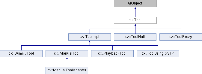Implemented in cx::PlaybackTool, cx::ToolProxy, cx::ToolImpl, and cx::ToolNull.