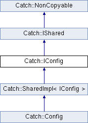 Catch::IShared Catch::NonCopyable Catch::SharedImpl< IConfig > Catch::Config
