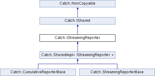 Catch::IShared Catch::NonCopyable Catch::SharedImpl< IStreamingReporter > Catch::CumulativeReporterBase Catch::StreamingReporterBase
