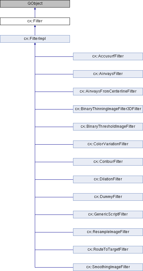 Implemented in cx::GenericScriptFilter, cx::AirwaysFilter, cx::RouteToTargetFilter, cx::AirwaysFromCenterlineFilter, cx::AccusurfFilter, cx::BinaryThresholdImageFilter, cx::ContourFilter, cx::ColorVariationFilter, cx::BinaryThinningImageFilter3DFilter, cx::SmoothingImageFilter, cx::DummyFilter, cx::ResampleImageFilter, and cx::DilationFilter.