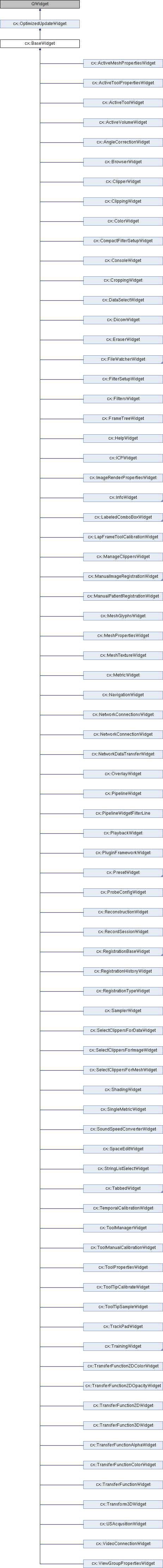 Reimplemented in cx::MeshInfoWidget, cx::CenterlinePointsWidget, cx::ImageLandmarksWidget, cx::TrackPadWidget, cx::LandmarkRegistrationWidget, cx::RegistrationHistoryWidget, cx::LandmarkImage2ImageRegistrationWidget, cx::LandmarkPatientRegistrationWidget, cx::ManualImageRegistrationWidget, cx::TemporalCalibrationWidget, cx::PatientLandMarksWidget, cx::FastOrientationRegistrationWidget, cx::FastPatientRegistrationWidget, and cx::ManualPatientRegistrationWidget.