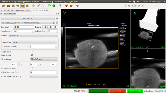 Reconstruct to start reconstruction. This is exactly the same operation as when reconstructing from the US Acquisition Widget.